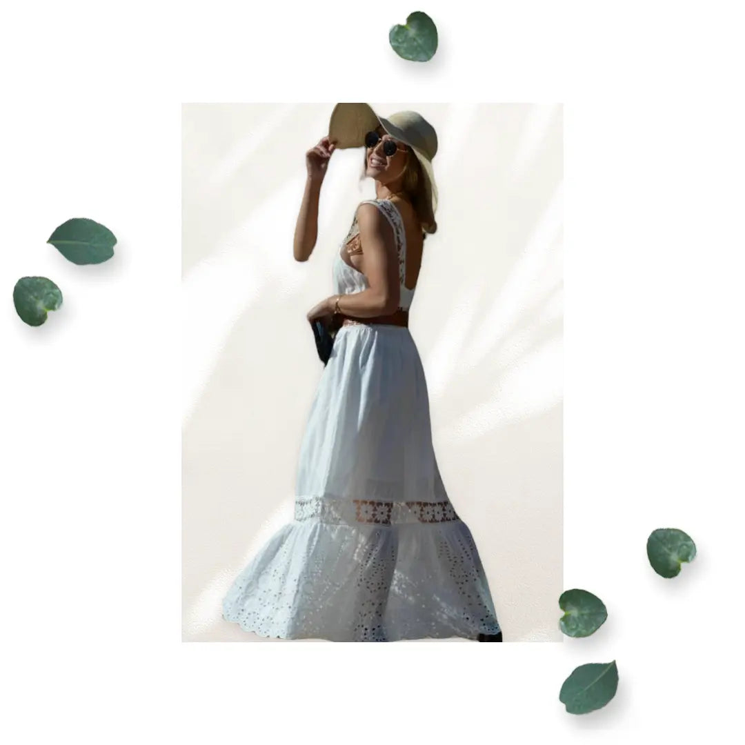 Women White Lace Woven Maxi Dress