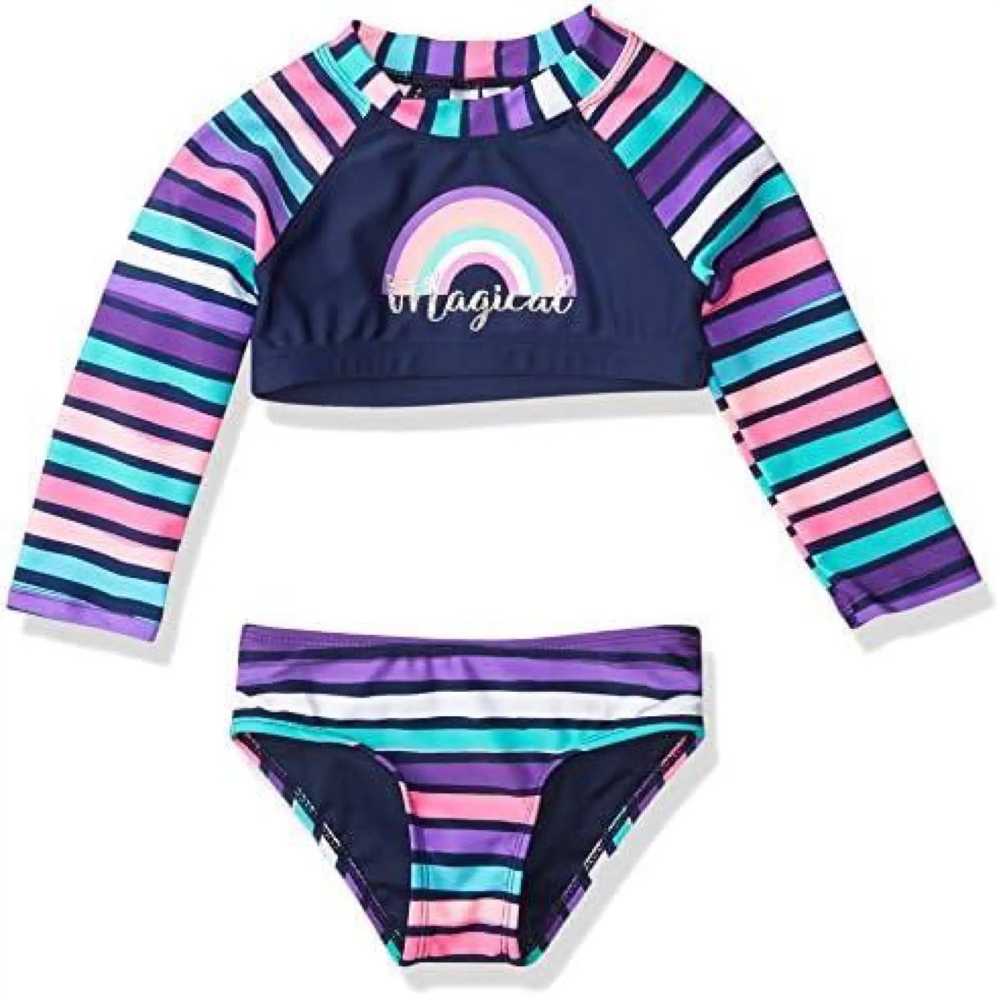 Limited Too Girls Printed Two Piece Long Sleeve Rashguard Swimsuits